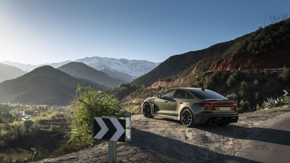 În modul pur electric, RS 5* plutește aproape fără niciun zgomot prin satele de munte. Când drumul devine mai dificil, motorul cu ardere internă și motorul electric își unesc forțele pentru a pune la dispoziție rezerve de putere care sunt foarte utile în urcările lungi sau pe serpentinele întortocheate. În pasurile munților Atlas, senzația de care se bucură persoana de la volan este esența RS 5*: un mix de senzație de încredere deplină și energie atletică, în armonie perfectă cu mediul marcat de provocări maxime.