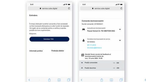 În fereastra de comandă poți vedea datele automobilului tău și informațiile de contact ale consilierului de service, precum și lucrările deja comandate.